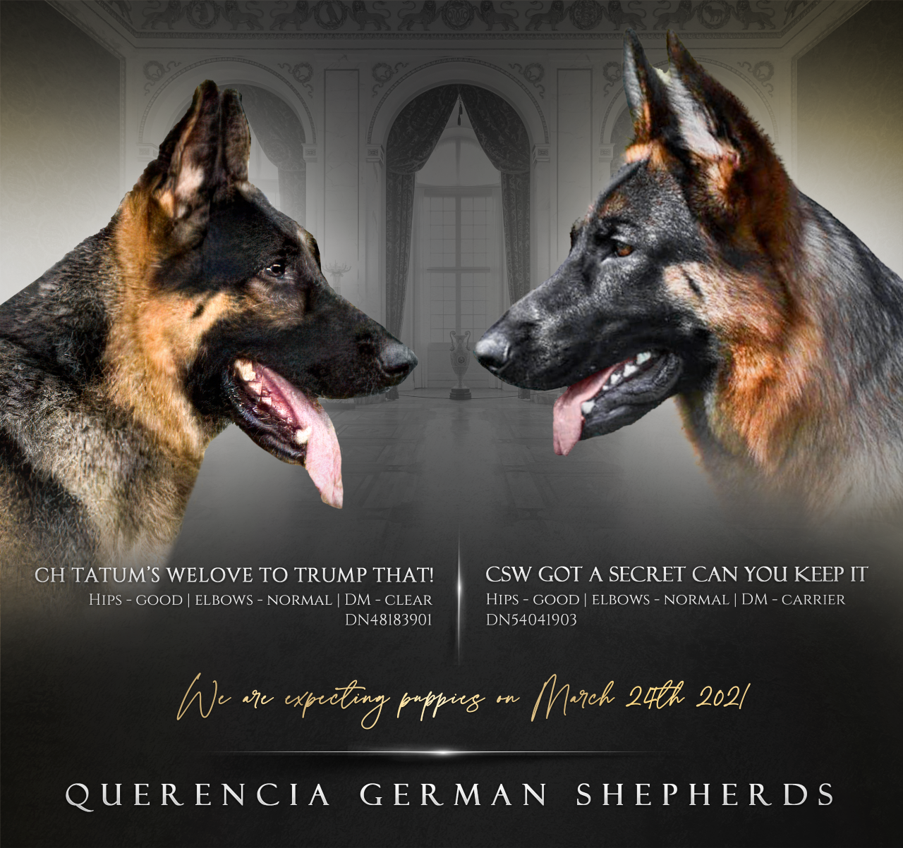 Puppies have arrived. Two females!!!!!!!!!!!!!!!! March 20th, 2021! Please go to our application page if you are interested. Puppies have all been adopted. One is staying here at Querencia and the other pup headed to Canton, GA.